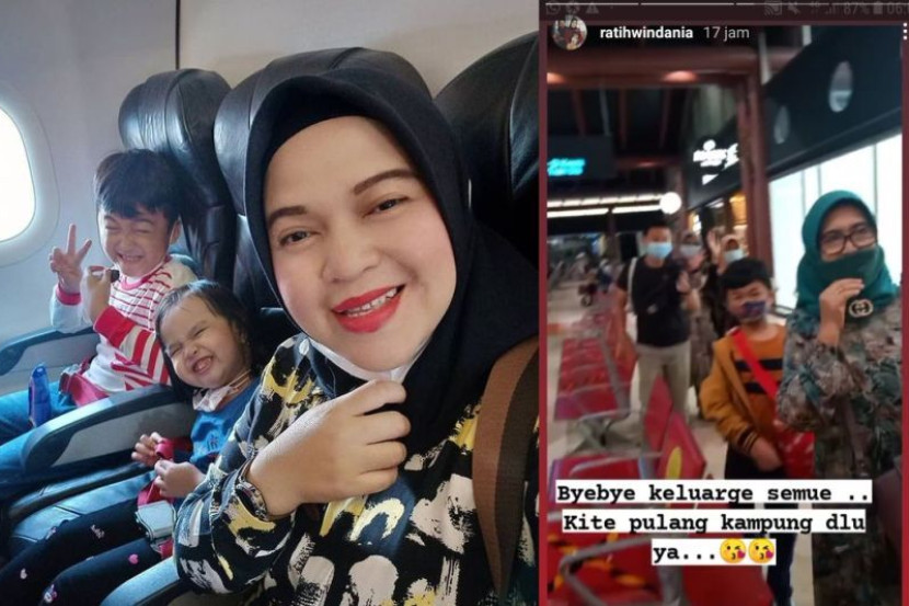 Ratih Windania menulis: "Byebye keluarga semua, kita pulang kampung dulu ya".