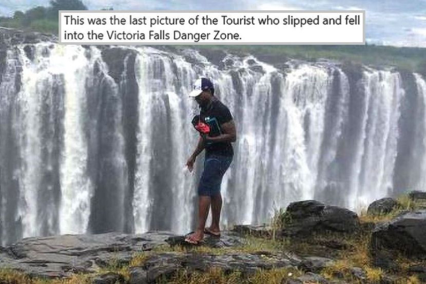 FOTO terakhir seorang pelancong sempat dirakam sebelum dia menemui ajal akibat tergelincir di Victoria Falls, Jumaat lalu.