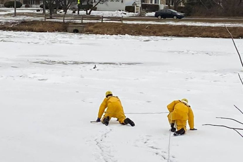 Bomba merangkak selamatkan ‘angsa’ terperangkap dalam ais, rupa-rupanya patung!