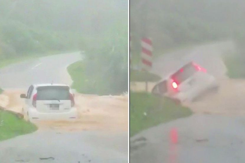 Insiden kereta Myvi YANG dihanyutkan arus deras ketika cuba meredah banjir pada kira-kira pukul 6 petang Jumaat, dirakamkan menerusi video yang tular.