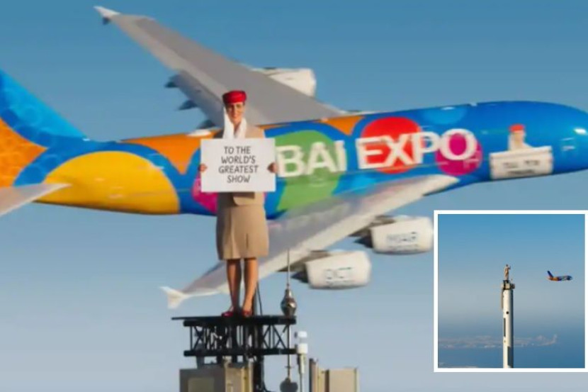 Iklan baharu yang dikeluarkan oleh Emirates menampilkan Nicole Smith-Ludvik, seorang penerjun payung terjun (skydiver) dan personaliti media sosial yang mengenakan seragam pramugari syarikat penerbangan itu, berdiri di mercu Burj Khalifa sambil memegang plakad untuk mempromosikan Ekspo Dubai.