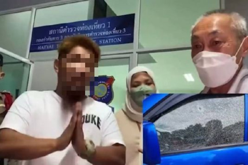 Lelaki tempatan ini membuat permohonan maaf di hadapan balai polis Hatyai.