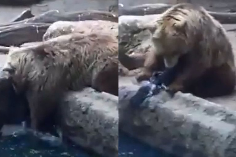 Seekor beruang di Zoo Budapest menyentuh emosi warganet apabila bertindak menyelamatkan seekor burung gagak yang sedang lemas dalam kolam.